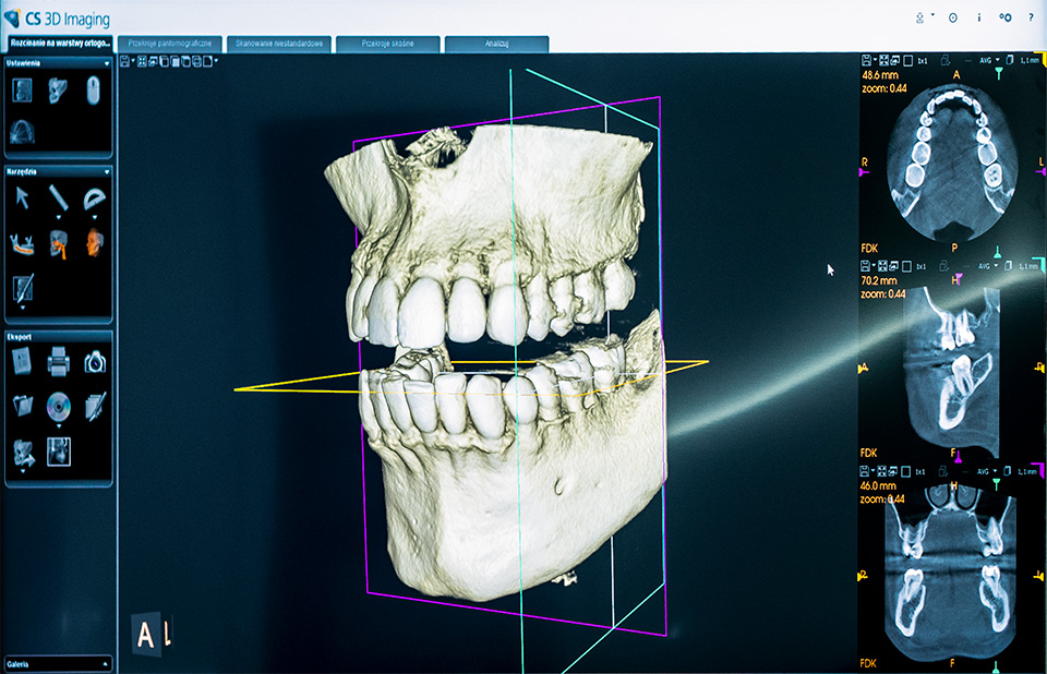 Oferujemy Państwu pełen zakres usług stomatologicznych, od stomatologii ogólnej po specjalistyczne usługi stomatologiczne z zakresu periodontologii, chirurgii stomatologicznej i implantologii. Posiadamy osobną pracownię radiologiczną, w której mamy możliwość wykonania dla Państwa cyfrowych zdjęć zębowych, zdjęć pantomograficznych oraz tomografii komputerowej CBCT 3D. Współpracujemy ze szpitalami SPSK1 i SPSK2 PUM w Szczecinie w zakresie diagnostyki mikrobiologicznej i histopatologicznej naszej Pacjentów.